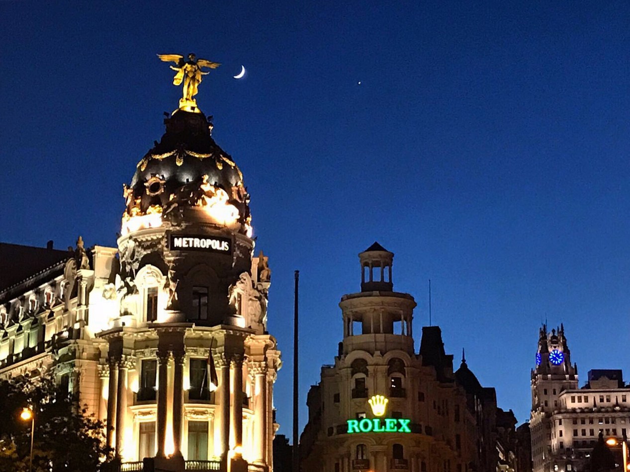 A arquitetura da Gran Vía é repleta de história. Um dos cartões-postais de Madrid, o Edifício Metrópolis está situado entre Alcalá e Gran Vía, bem no começo da avenida, e tem mais de um século de vida. Foi construído para abrigar uma companhia de seguros. É imponente e rende lindas fotografias.